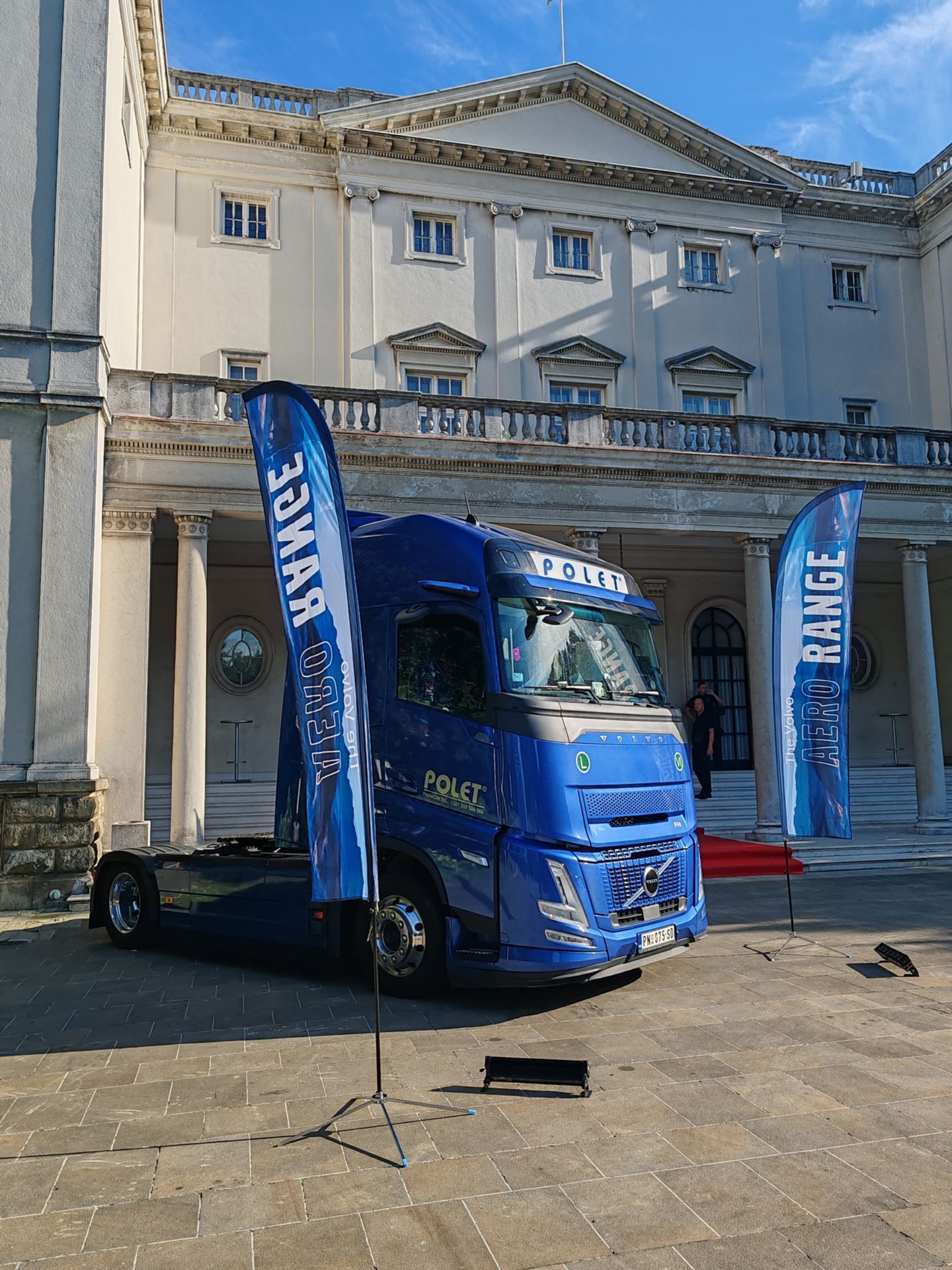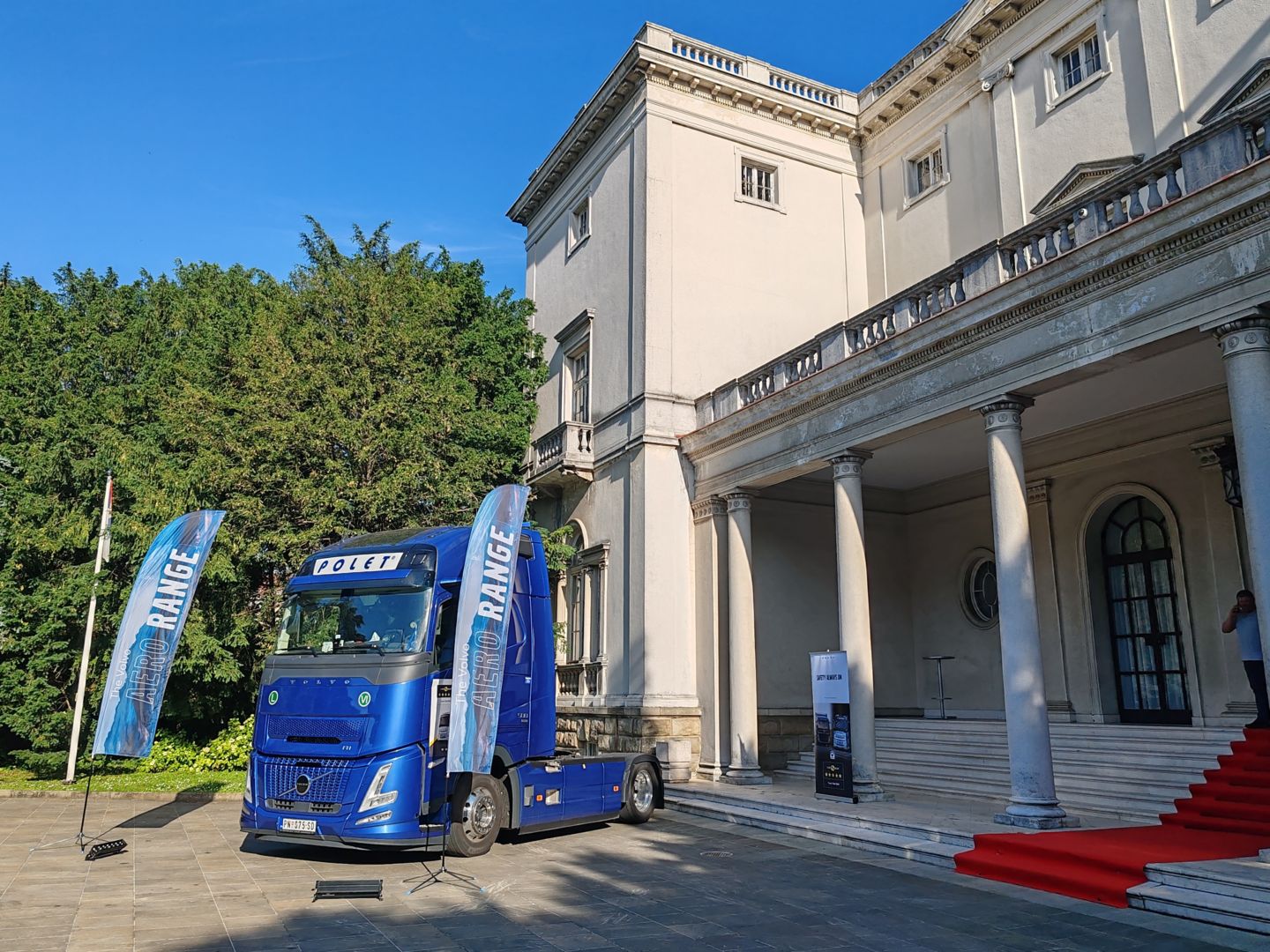 Na prijemu organizovanom u Belom dvoru u Beogradu, ugledne zvanice – ambasadore, članove diplomatskog kora, predstavnike političkog i javnog života, privrednike i druge goste ispred ulaska u znamenito zdanje „dočekala“ je perjanica Volvo Trucks korporacije, tegljač iz nove generacije FH Aero.